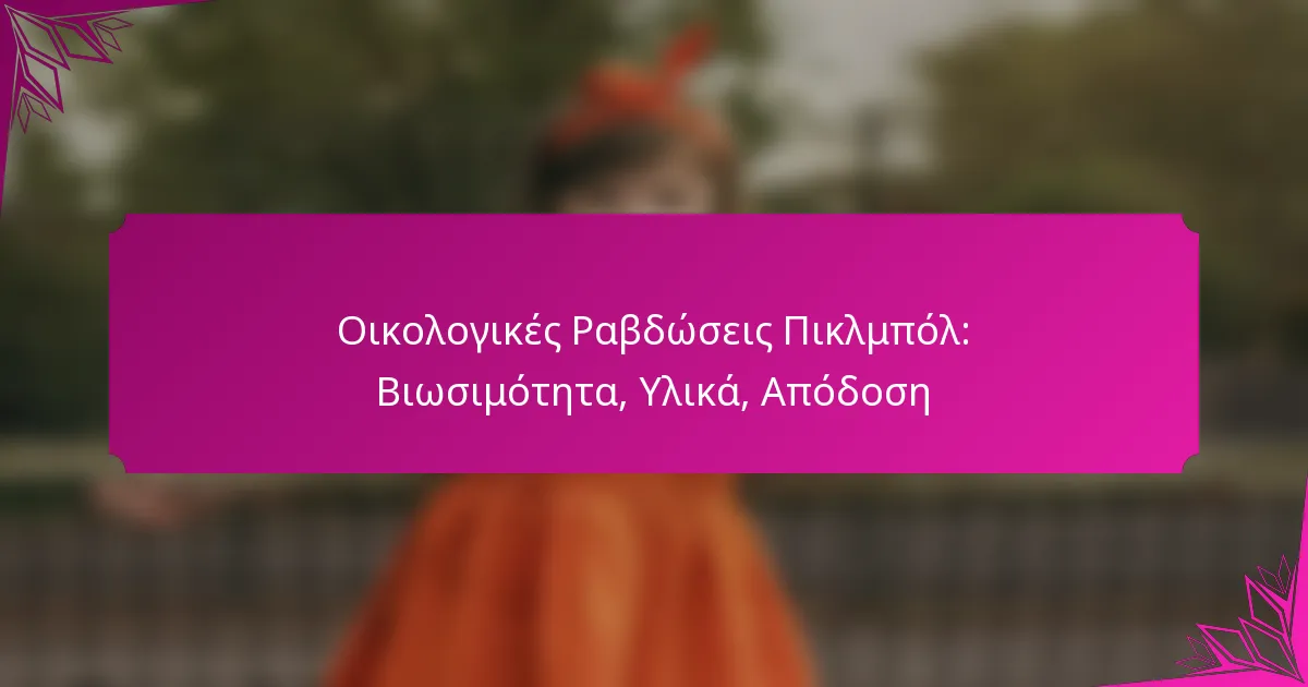 Οικολογικές Ραβδώσεις Πικλμπόλ: Βιωσιμότητα, Υλικά, Απόδοση